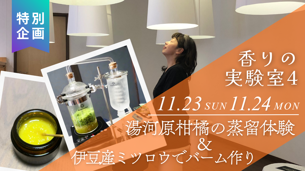 イベント名 11/23,24 香りの実験室4特別企画 湯河原柑橘の蒸留体験 & 伊豆産ミツロウバーム作り