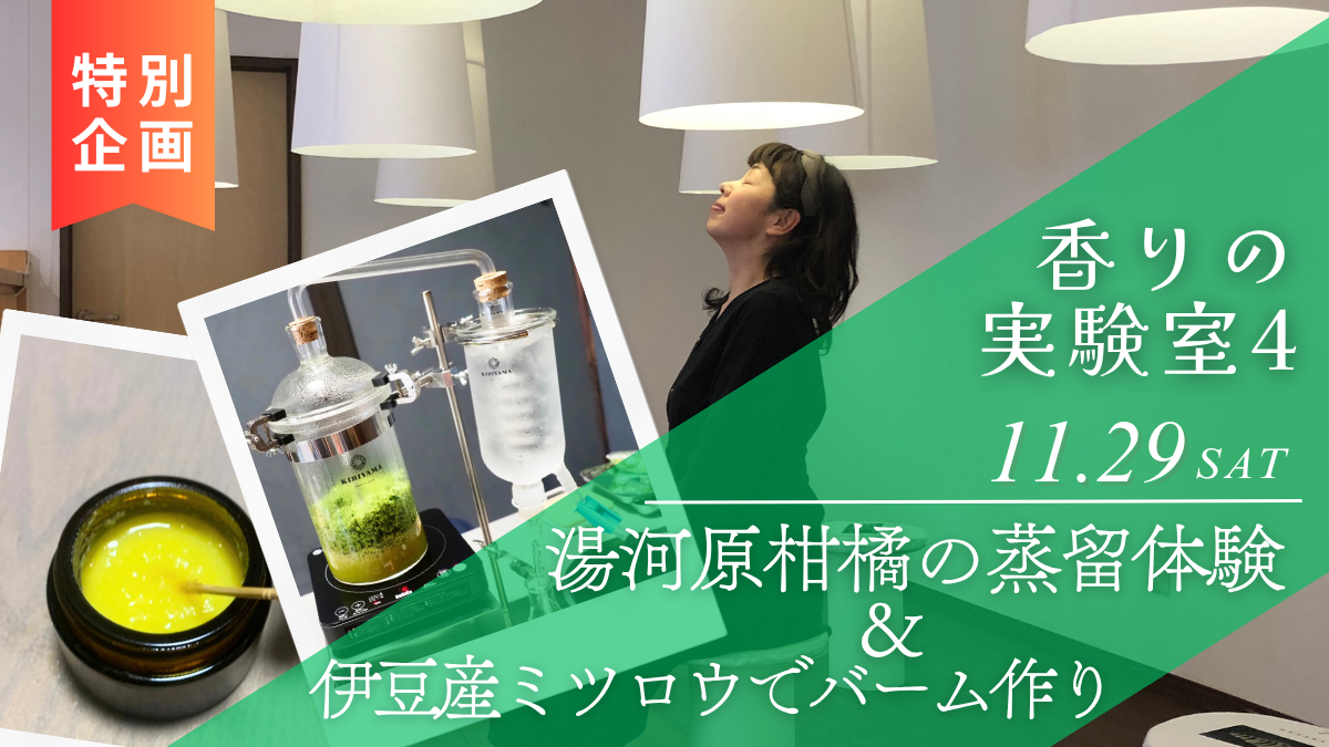 11月の湯河原は柑橘のシーズンに突入。年間30種類以上の柑橘が採れる湯河原・真鶴エリアならではの贅沢な香り体験です。湯河原・真鶴で採れた旬の柑橘をふんだんに使い、その日だけの特別なブレンドで香りを抽出します。