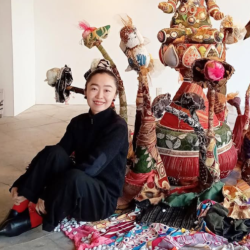 神奈川県在住。平面、立体、インスタレーションなど多様な手法を駆使し、独特な色彩と多国籍的で幻想的な世界観を創造する現代美術家。テーマには「人間賛歌」「多様性」があり、古布、粘土、木材、ワイヤーなど様々な素材を組み合わせ、“人形(ひとがた)”のような造形作品に昇華する表現を得意とする。